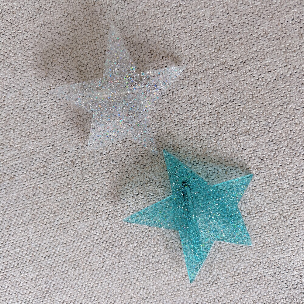 위트있는 모양의 반짝이 별 아크릴 모티브가