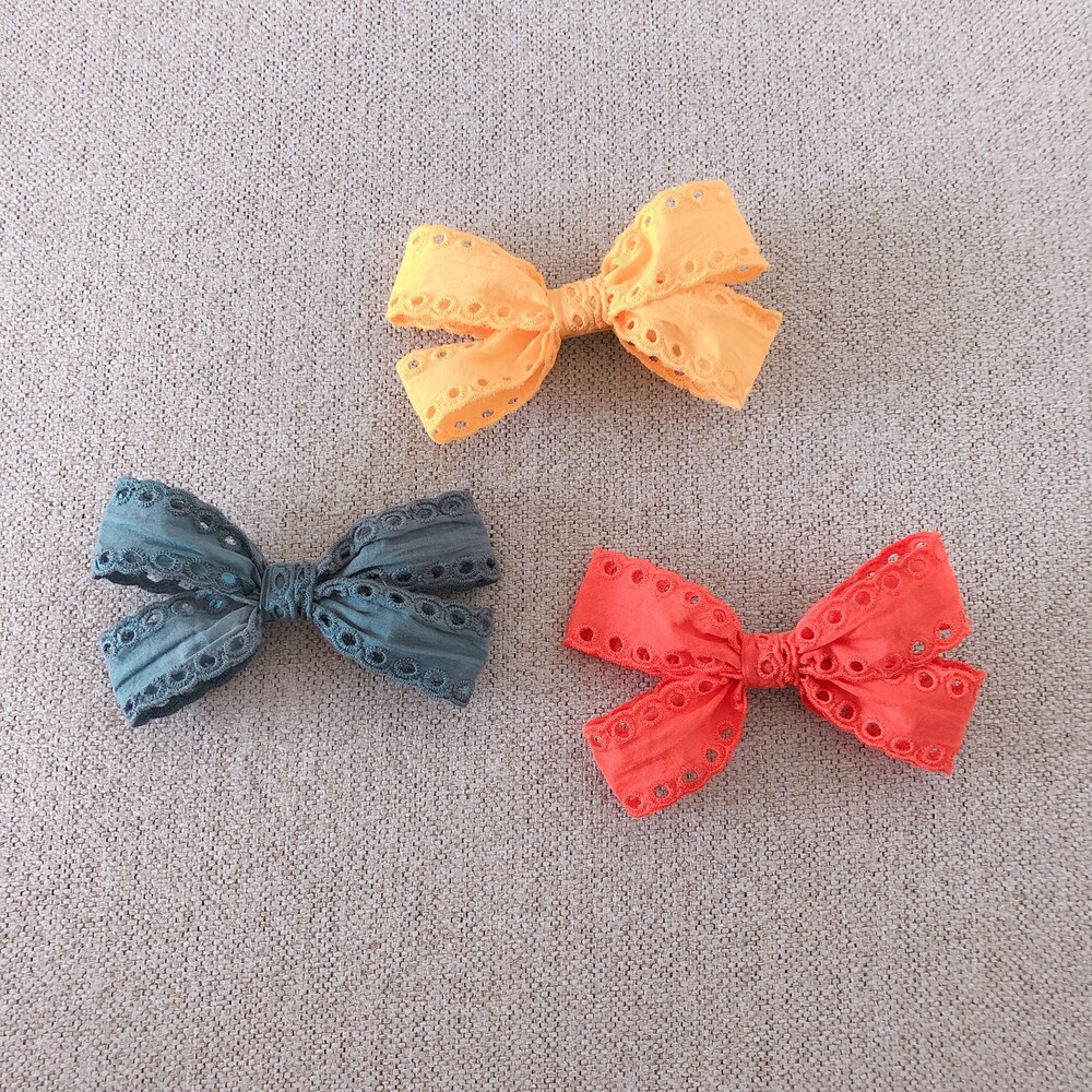 사랑스러운 아일렛 면소재 리본핀이에요!