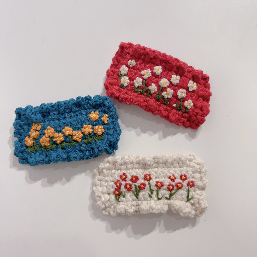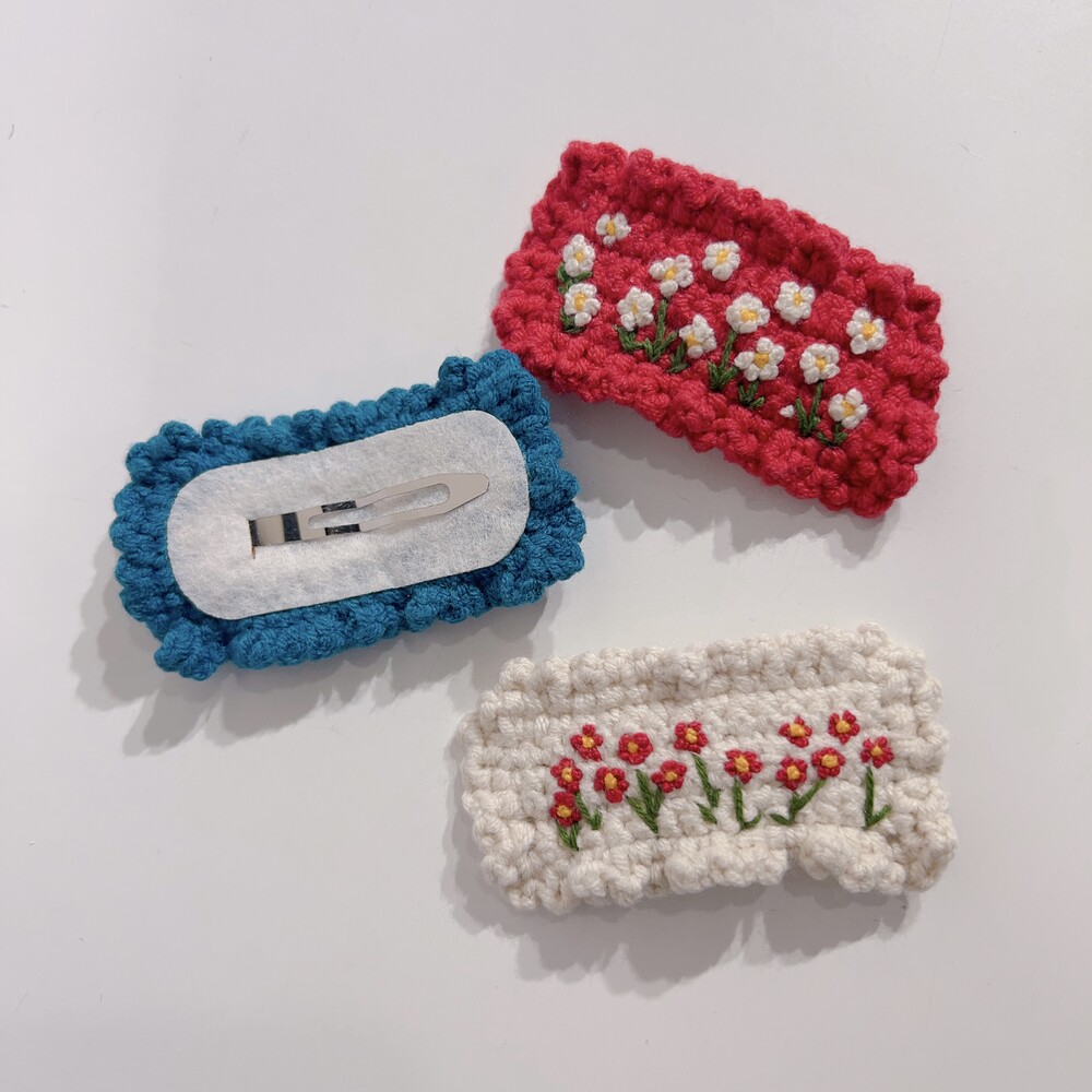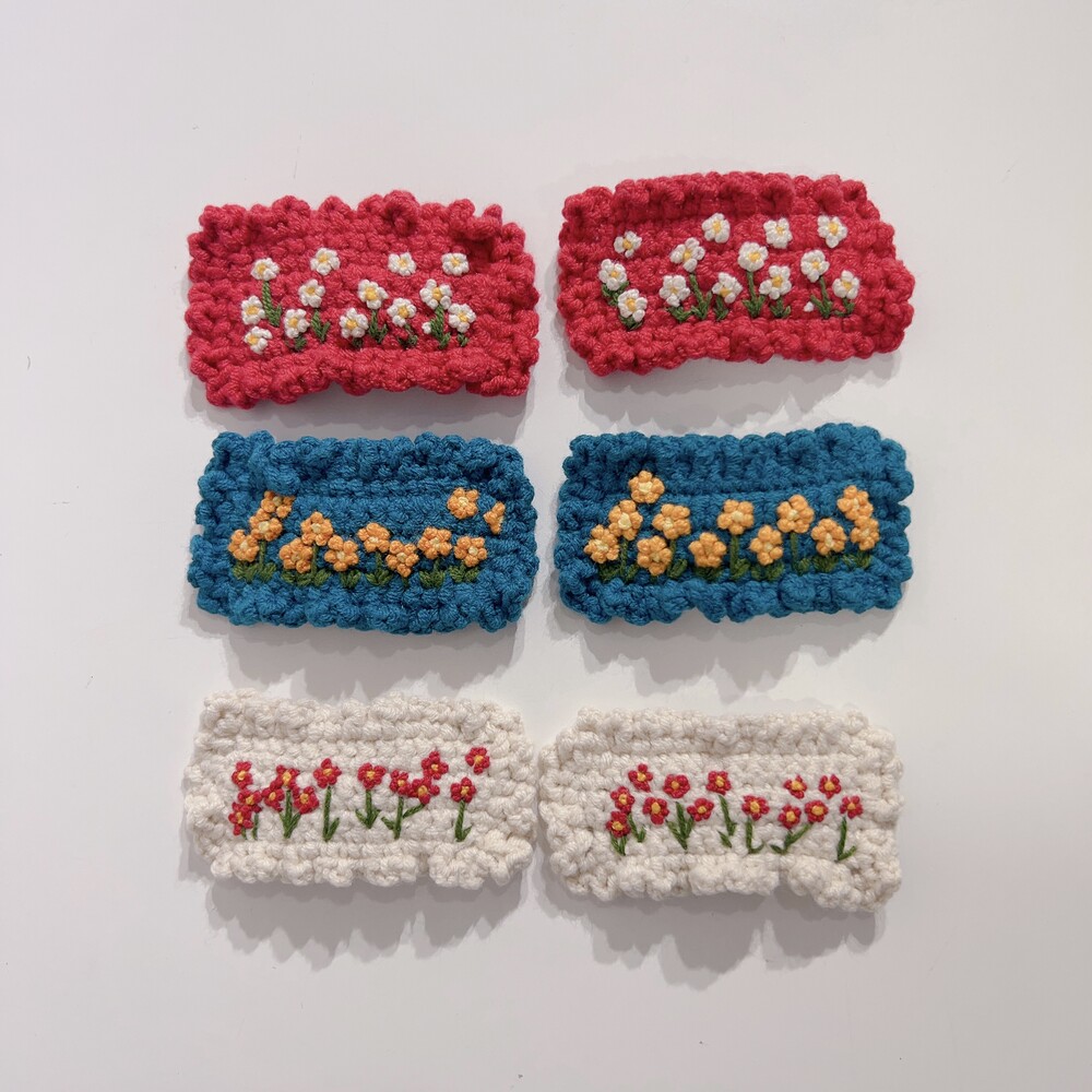 귀여운 꽃밭 모티브의 크로쉐 똑딱핀이에요!