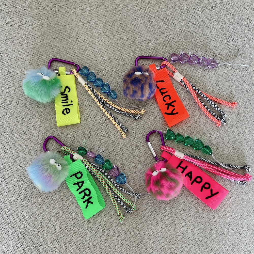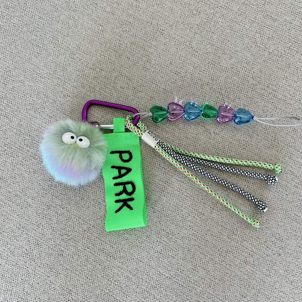 네온그린 네임택 + 민트&연보라 먼지몽 + 멀티 하트참