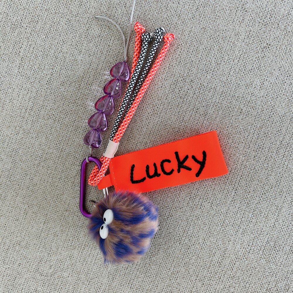 네온오렌지 네임택 + 보라&갈색 먼지몽 + 보라 하트참