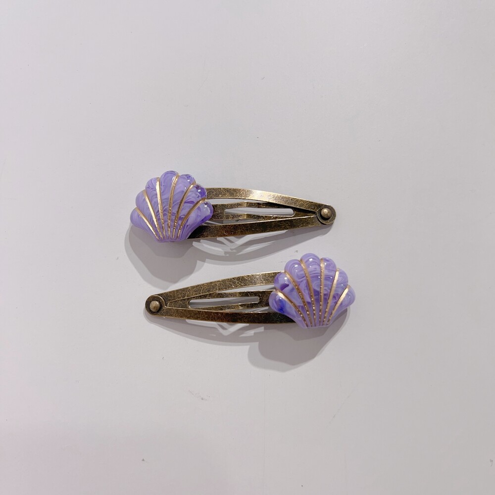 신쭈 소재 똑딱 핀대, 마블링 조개 모티브, 반짝이는 페인팅까지