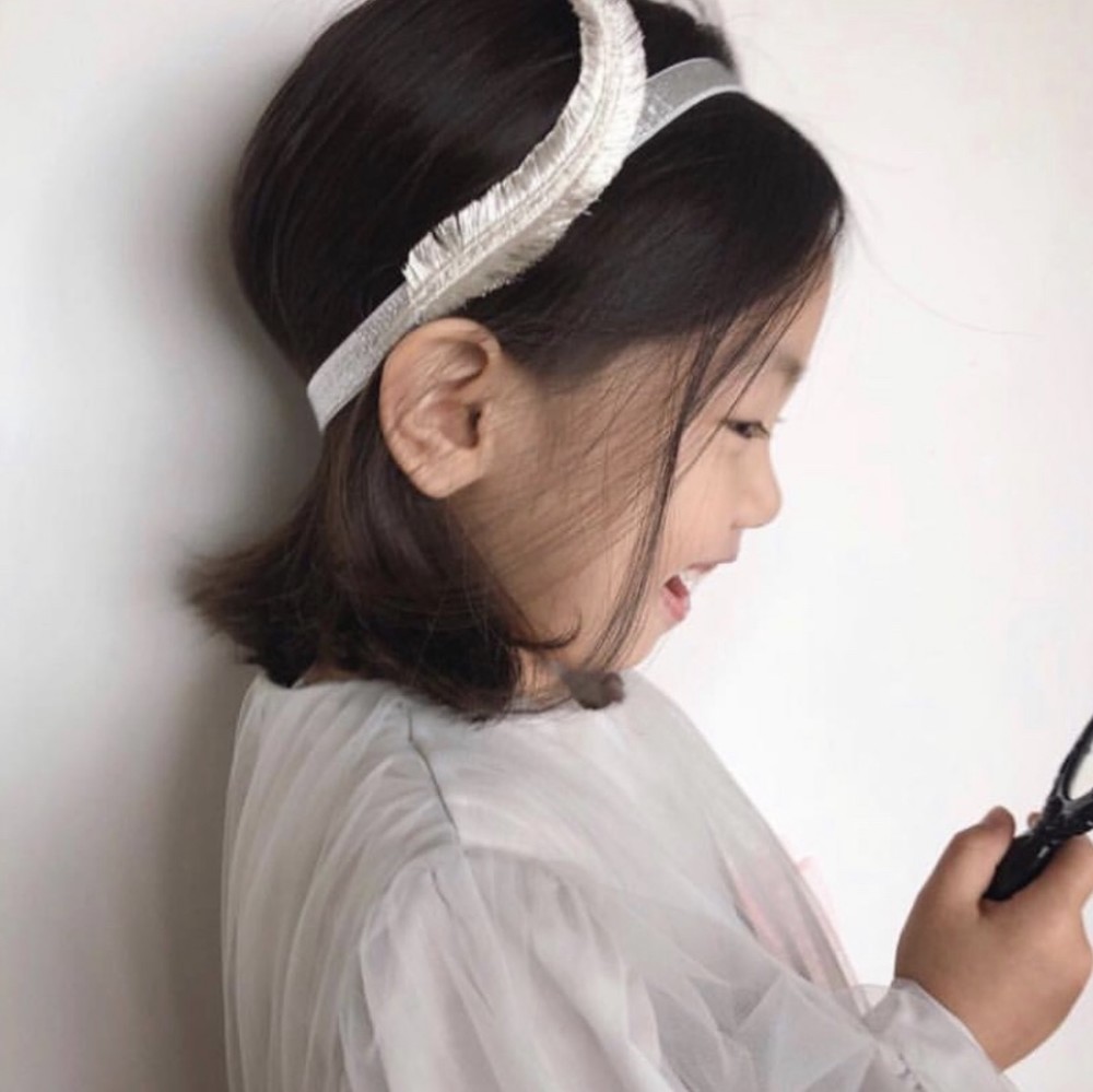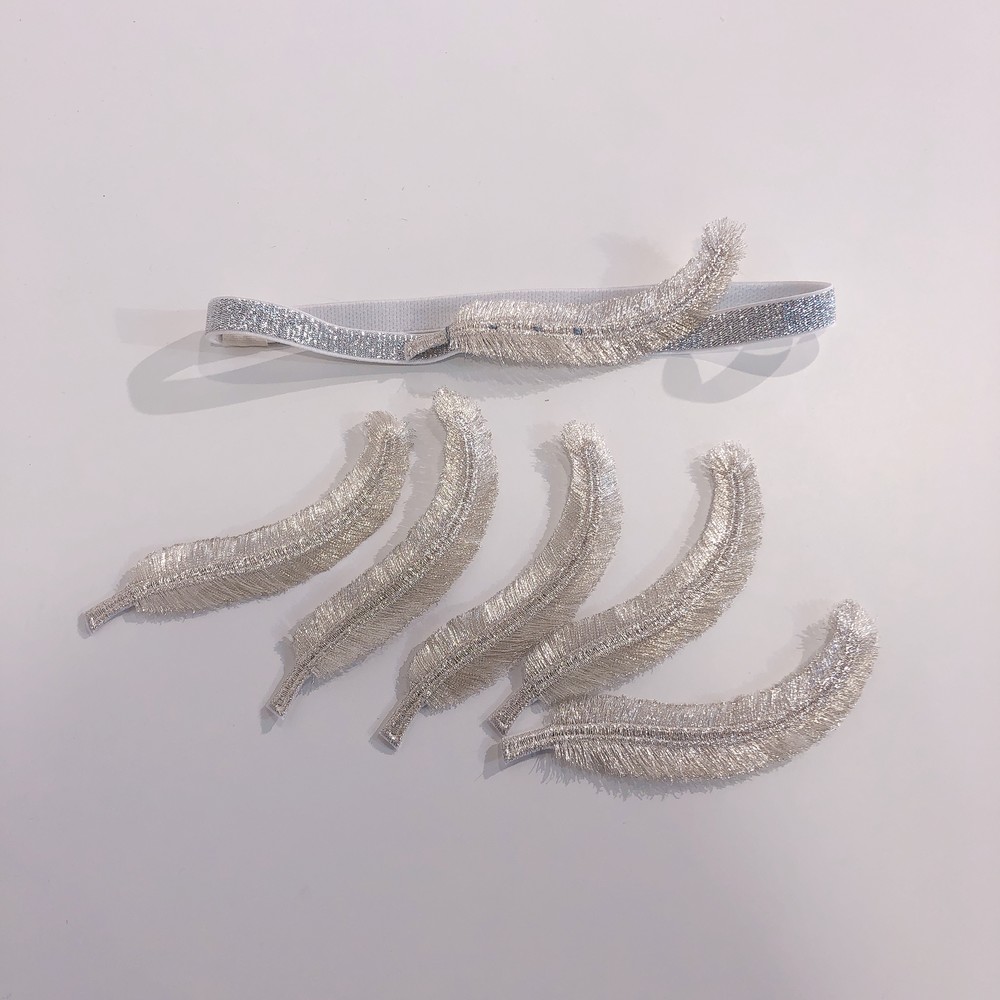 반짝이는 은색 깃털이 장식된 스페셜한 헤어밴드에요~